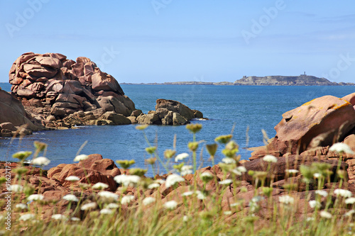 pink, brittany, france, atlantic, sea, ocean, rock, hike, hike, vacation, vacation, view, panorama, horizon, insular, summer, blue, sunny