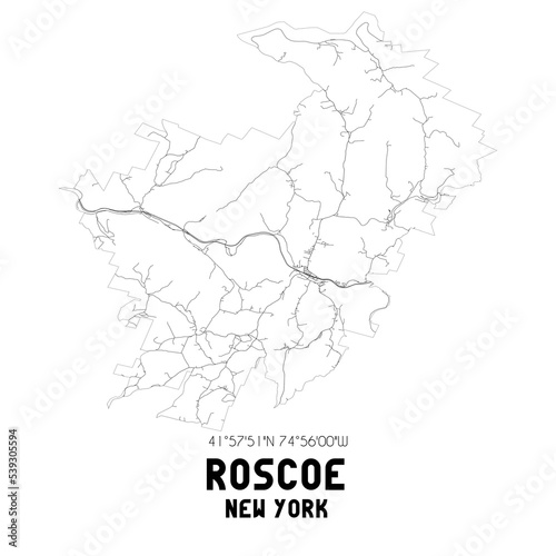 Roscoe New York. US street map with black and white lines.