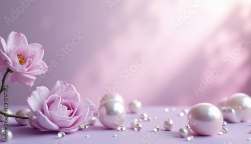 rose, bloom, elegant, soft, indoor, decoration, pearl, scatter, romantic, gentle, studio, ornament, flower, rest, calm, artwork, shine, peaceful, background, stem, to illuminate, dreamy, display, jewellery, ornamented, tender, surface, gift, arrangement, gem, style, delicate, table, bouquet, bead, still life, shiny, light, love, celebration, accessory, tabletop, beauty, scene, decor