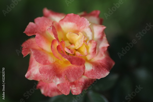 rose flowers close up on a blurred background in summer red green pink white