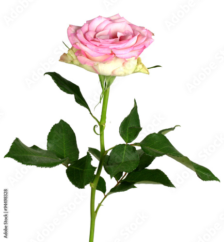 rose, pink, white, background, view, gift, stem, profile, leaf, isolated, greeting, decoration, bud, natural, green, floral, flower petals, passion, day, holiday, lilac, celebration, blossom, bloom, card, vertical, top, 1, relation, love, object, flora, plant, beauty, birthday, wedding, romantic, valentine, beautiful, mother, nature, single, present