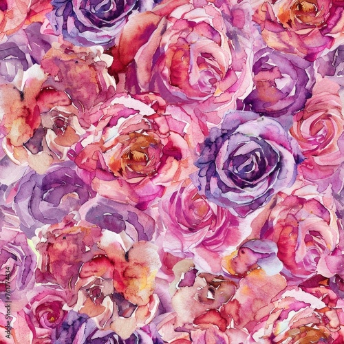 Rose watercolor flowers seamless pattern