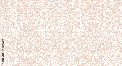pattern, design, texture, floral, damask, ornate, intricate, wallpaper, background, seamless, elegant, delicate, vintage, retro, classic, symmetric, repeating, abstract, arabesque, scroll, swirl, line art, illustration, beige, pink, white