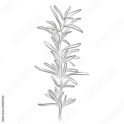 Rosemary one line drawing. Medicinal plant outline drawing on a white background. Herbs art print.