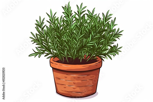 rosemary plant, potted rosemary plant. cartoon drawing, water color style,