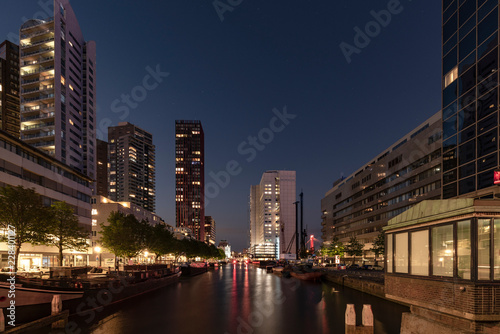 night, city, skyline, city landscape, river, downtown, water, urban, architecture, building, skyscraper, building, sky, light, travel, bridge, blue, harbor, business, tower, rotterdam, holland, holland, awesome, long exposure, photo, illumination, light