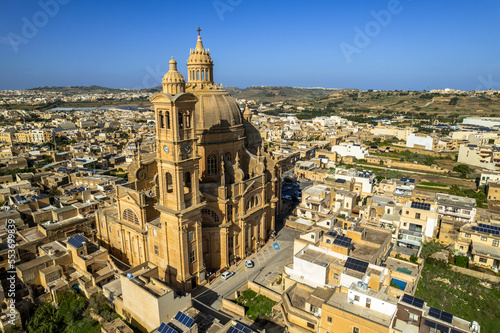 Rotunda St. John Baptist Church in the town of Xewkija, Gozo, Malta. Aerial drone view