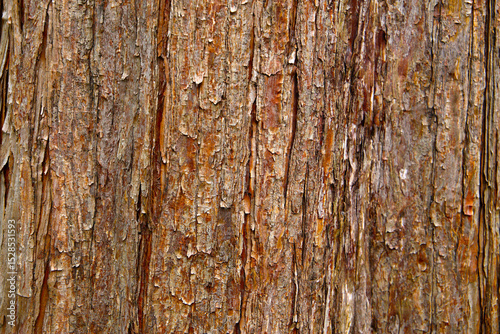 Rough and flaky bark of a Dawn Redwood tree in close-up view