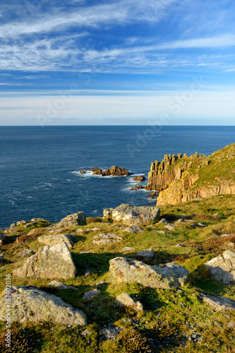 Rough and rocky shore near Land's End, the most westerly point of England, Cornwall