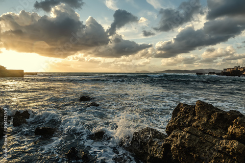 Rough sea in Alghero rocky shore at sunset