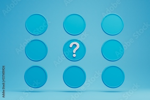 round blank icons to place blue text in the middle of an icon with a question mark. copy paste, copy space. 3D render