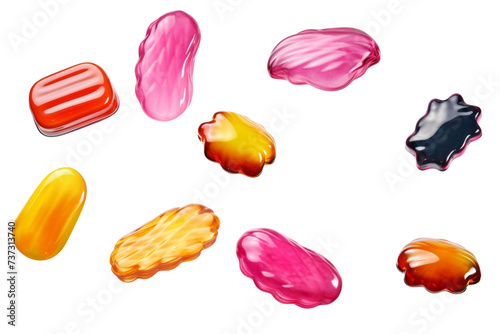Round colorful Jelly falling in the air isolated on background, jellybeans candy for sweet dessert meal.