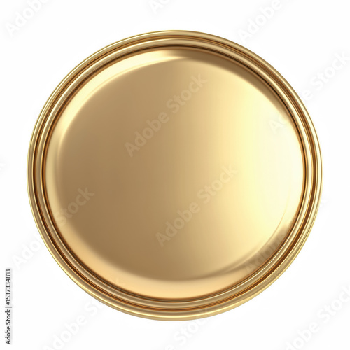 Round golden lid with glossy metallic texture, 3D illustration of smooth luxury cover or container top, isolated on white background.