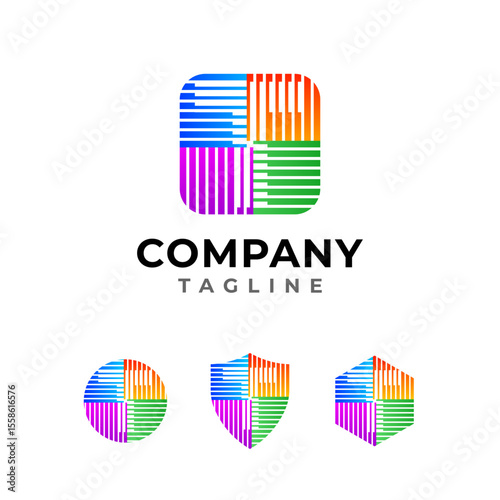 Round Square Letter T Logo with Alternate Logo Variations Circle, Shield, Hexagon