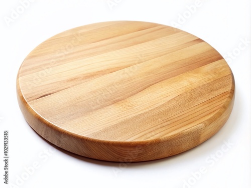 Round Wooden Cutting Board Isolated on White Background - Perfect for Culinary and Kitchen Decor