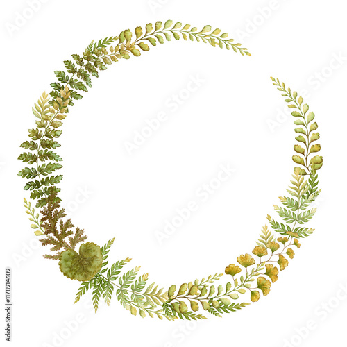 chaplet, leaf, round, green, fern, frame, arrangement, template, decorative, bracken, plant, hand-drawn, forest, botanical, foliage, greenery, frond, prehistoric, textured, aesthetic, brown, drawing, graphic, design, isolated, element, watercolor, painting, texture, floral, detailed, herbarium, wilderness, timberland, wooded, wild, timberland, jungle, flora, nature, botany, leafy, natural, leaf, herb
