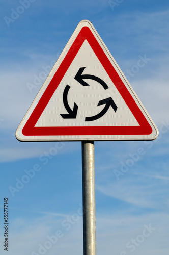 point, transportation, outdoors, daytime, structure, closeup, signs, triangle, curve, individual, shape, post, image, european, pointing, signage, arrow, consult, picture, 1, photograph, roundabout, signpost, france, mediterranean, roadsign, single object, traffic sign, triangular, object, exterior, close, blue skies, symbol, nobody, sky, color image, western europe, languedoc, polygon, color photography