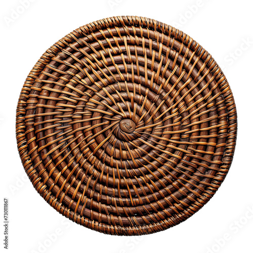rounded, shaped, rattan, place, mat, top, view, isolated, white, background, decor, tableware, dining, kitchen, home, interior design, valentine, romantic, design, hand-made, natural, environmentally friendly, woven, crafted, artisan, sustainable, unique, stylish, elegant, charming, wicker, basket, pattern, texture, straw, brown, wood, round, hat, circle, object, rope, threaded, craft, bamboo, material, wooden, nature, fiber
