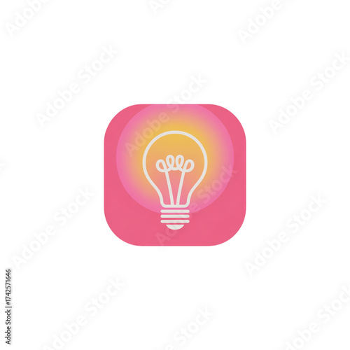 Rounded Square Icon with a Glowing Light Bulb and Pink and Yellow Gradient idea innovation isolated on a transparent background