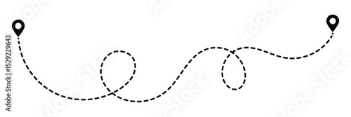 Route icon. Dot line path route travel banner illustration. Two points with dotted path and location pin.