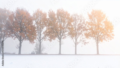 row, autumn, fall, autumn, foliage, gold, orange, yellow, tree, white, snowy, snow, background, toned, winter, field, landscape, copy space, copy space, panorama, view, scenery, minimalistic, minimalism, minimalist, pastel, pale, background, nobody, empty, tree, park, forest, wood, alley, road, natural, countryside, nature, cold, frost, sombre, moody, black, weather, mist, fog, sky