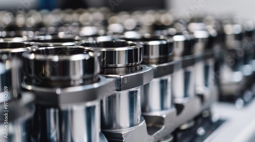 manufacturing, industry, metal, steel, factory, production, machinery, engineering, technology, industrial, equipment, lathe, metalworking, precision, mechanical, workshop, automated, process, plant, closeup, shiny, new, row, background, detail, chrome, component, nobody, indoor