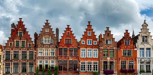 Row of Traditional Brick Buildings with Arched Windows in Bruges, Belgium Photo