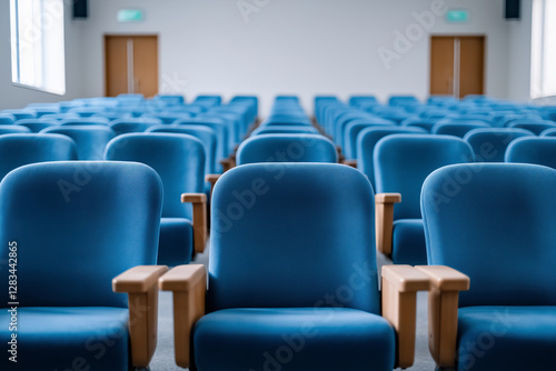 motion picture, theatre, auditorium, blue, seat, fabric, chair, waiting, area, interior, design, seating, arrangement, light, natural, entertainment, venue, film, screening, audience, comfort, roomy, modern, architecture, indoor, event, space, cinematic, life events, relaxation, public, furniture, organisation, leisure, planning, visual, aesthetic, quiet, symmetry, pattern, row, community, gathering, popular, culture, evening, activity, recreational