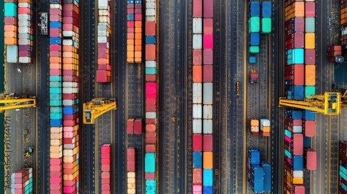 Rows of cargo containers at a busy port flat design top view shipping theme water color vivid
