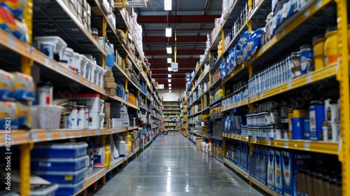 Rows of Products in a Warehouse Store.