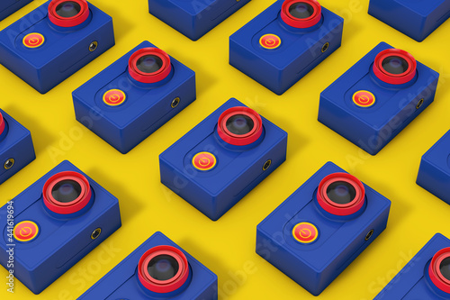 three-dimensional, illustration, action, row, camera, many, equipment, background, video, digital, technology, high, extreme, hd, sport, photo, lens, cam, definition, waterproof, photo, media, studio, motion picture, professional, product, television, compact, red, film, shot, cinema, press, travel, fun, small, standard, footage, adventure, blue, yellow, contraption, sharpened, videographer, model, plastic, isometric
