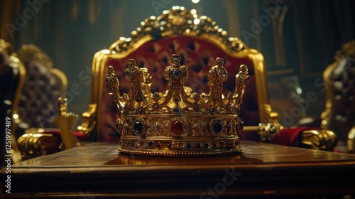 Royal Gold Crown on Antique Throne: Majestic Symbol of Power and Legacy