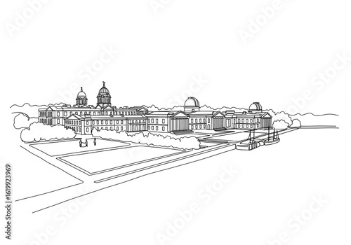 Royal Museums Greenwich in United Kingdom one line drawing style