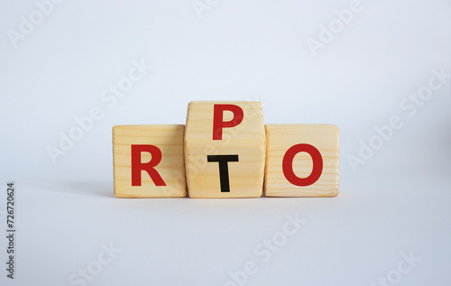 RPO vs RTO symbol. Wooden cubes with words RTO to RPO. Beautiful white background. business concept. Copy space