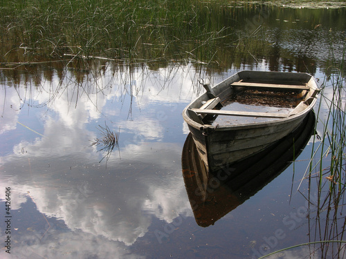 sweden, see, boat, water, cloud, reed, dinghy, idyl, stillness, ease, calm
