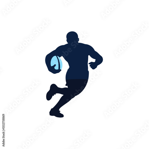 Rugby player sprinting with ball, dynamic motion in a minimalistic style