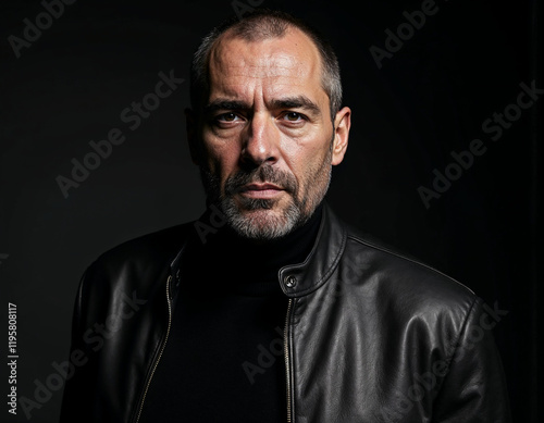 Rugged Portrait of a Man in a Leather Jacket with Dramatic Studio Lighting