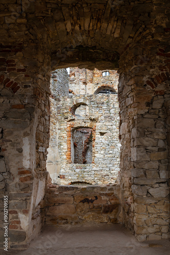 Ruins of the 17th-century Krzyztopor palace residence. Windows. Background. Ujazd, Swietokrzyskie Province, Poland