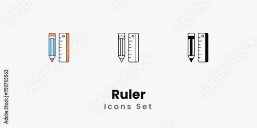 Ruler Icons thin line and glyph vector icon stock illustration