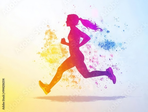 silhouette, woman, run, dynamic, fill, vibrant, colours, symbolize, fitness, energy, journey, runner, support, flow, movement, health care, teamwork, gradient, body, balance, sharpened, speed, mental, success, passion, joy, athlete, routine, art
