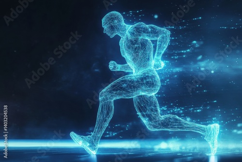 runner, silhouette, wireframe, mesh, digital, art, motion, speed, strength, dynamic, athletic, fitness, glowing, muscle, freeze, frame, technology, abstraction, cardio, movement, exercise, light, blue, energy, design, creativity, visualisation, human, figure, innovation, graphic, performance, concept, health, sport, model, futuristic, active, training, shape, artwork, illustration, body