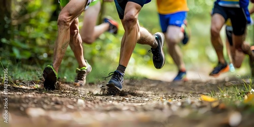 running, competition, athlete, forest, trail, dirt, shoe, speed, fitness, nature, exercise, endurance, activewear, teamwork, event, movement, landscape, leisure, adventure, health, terrain, racing, challenge, camaraderie, activity, energy, perspiring, training, agility, race, marathon, cardio, footrace, path, scenery, dynamic, group, performance, environment, lifestyle, running shoe, determination, effort, participation