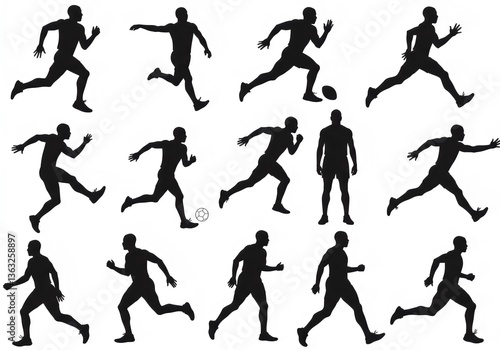 running, athlete, sport, exercise, fitness, motion, action, sprinting, black-and-white, illustration, vector, graphic, shadow, male, person, physical activity, marathon, track and field, runner, athletic, body, sportsman, cardio, healthy lifestyle, sport, energy, power, strength, determination, silhouette, people, player, football, tennis, silhouette, icon, set, soccer, man, run