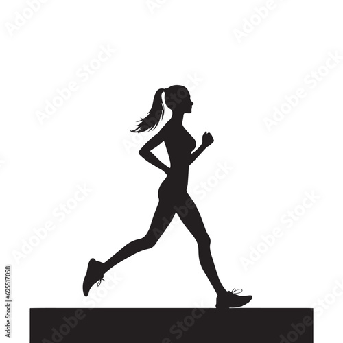Running Girl Silhouette: Athlete in Motion, Energetic Jogger Silhouetted in Striking Pose - Minimallest running black vector lady runner Silhouette