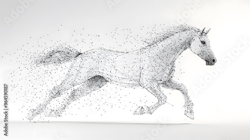 Running Horse from Lines: A dynamic image of a galloping horse, its powerful form outlined by flowing lines and clusters of dots representing its muscles.