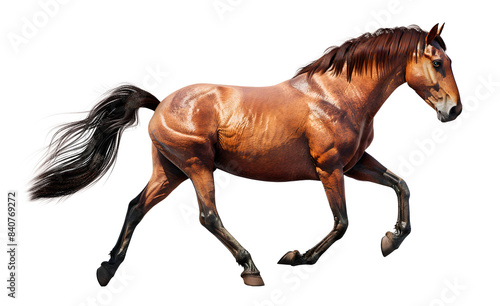 Running Horse isolated on transparent background, wild life concept, realistic illustration, generative ai