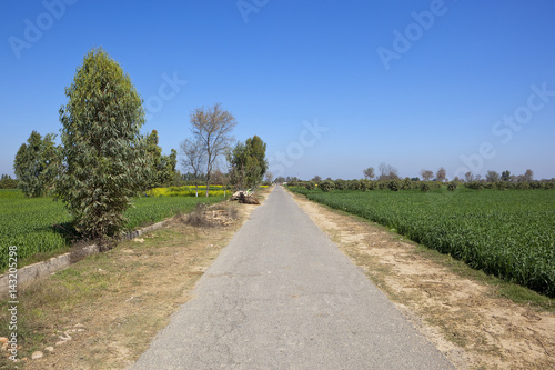 landscape, nature, outdoors, sky, blue, weather, rajasthan, rural, india, agriculture, arable, asia, farming, farmland, field, flower, countryside, crop, cultivation, scenery, scenic, ecology, environment, cattle, farm animal, road, highway, tarmac