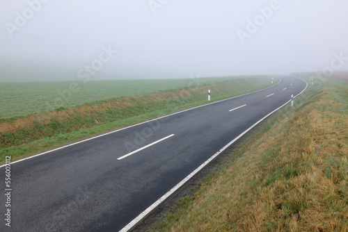 Rural Road on Foggy Spring Morning, Marktheidenfeld, Bavaria, Germany