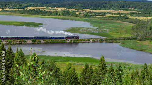 landscape, water, river, nature, lake, sky, summer, green, blue, grass, panorama, tree, forest, beautiful, vale, outdoors, rural, countryside, mountain, view, hill, tranquil, day, duck pond, scenic