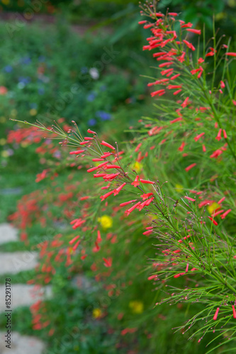 autumn, background, bell, bloom, blossom, bush, colours, coral, delicate, detail, fall, field, firecracker, flower, fountain, garden, gardening, green, hedge, leaf, nature, nicaragua, ornamental, plant, red, season, shrub, spring, stem, semitropical, suriname, texture, siam, tropical, vibrant, weeping, wood